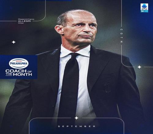 雷速体育10月10日宣 根据意甲联赛官方的消息,AC米兰主教练阿莱格里当选为了意甲9月最佳主帅。